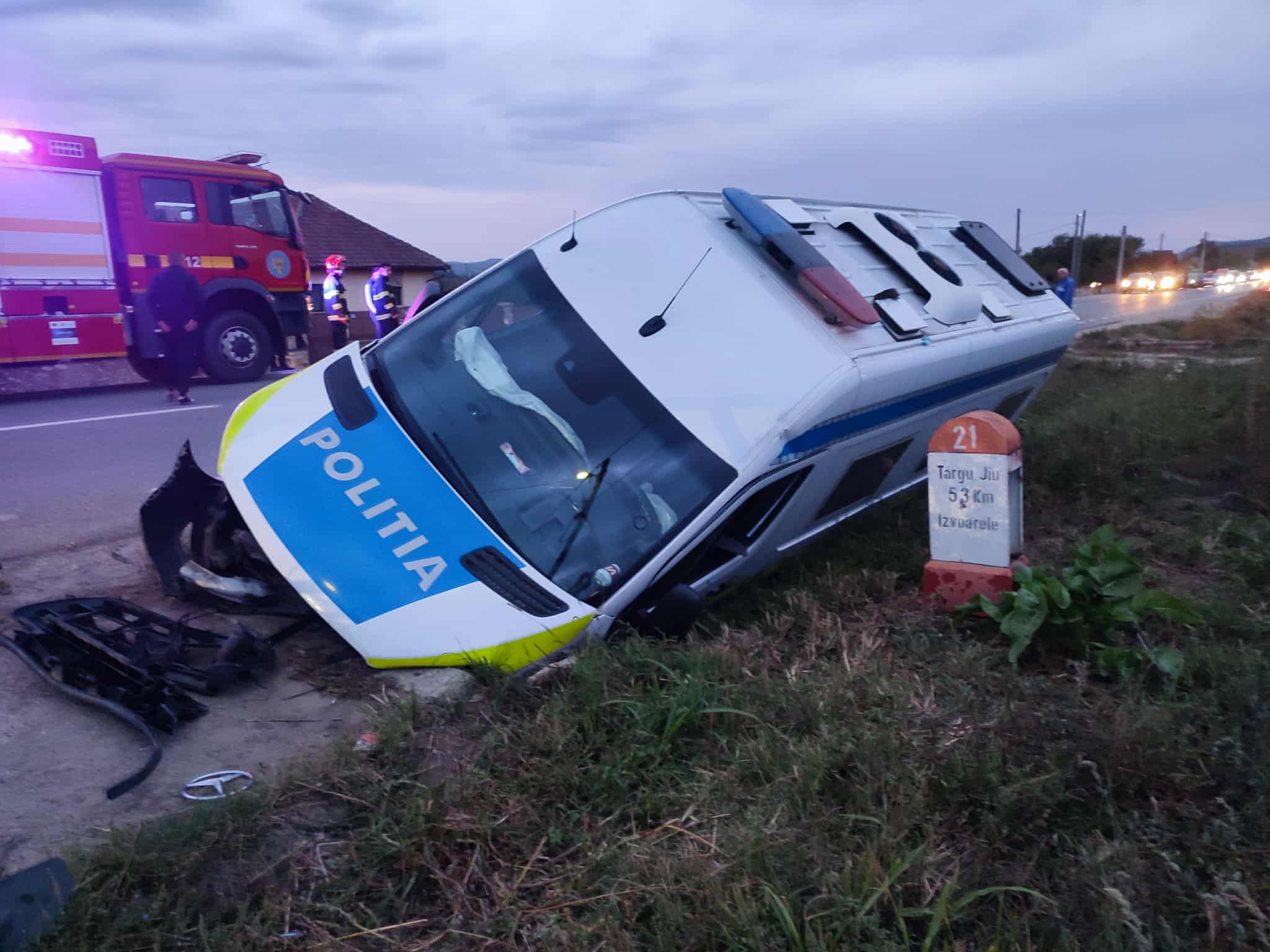 În autospecială se aflau doi polițiști din cadrul IPJ Dolj, care depuseseră reținuți în arestul IPJ Gorj și se întorceau la sediul poliției Dolj.