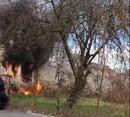 Un incendiu de vegetație s-a produs astăzi în zona Lotru, din Târgu Jiu. Focul s-a extins la fața unei clădiri.