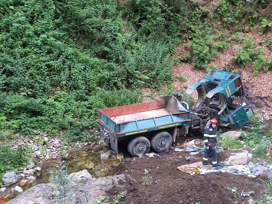 Din datele preliminare, a reieșit că o autoutilitară cu 5 sau 6 ocupanți s-a răsturnat într-o zonă greu accesibilă.