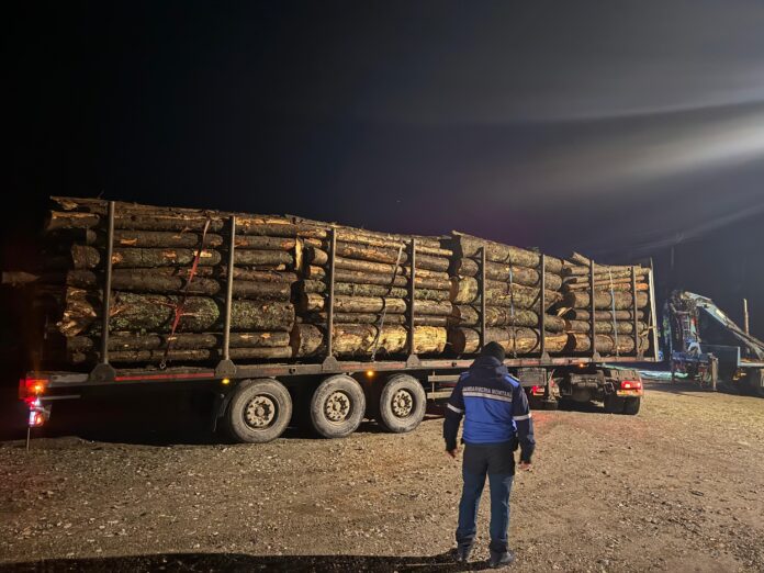 Jandarmii montani au întocmit documente de sesizare sub aspectul săvârșirii infracțiunii prevăzute de art.151, alin (2), lit. c) din Codul Silvic ,,Transportul cu orice mijloace de transport al materialelor lemnoase neînsoţite de avizul de însoţire a materialelor lemnoase sau fără provenienţă legală”.