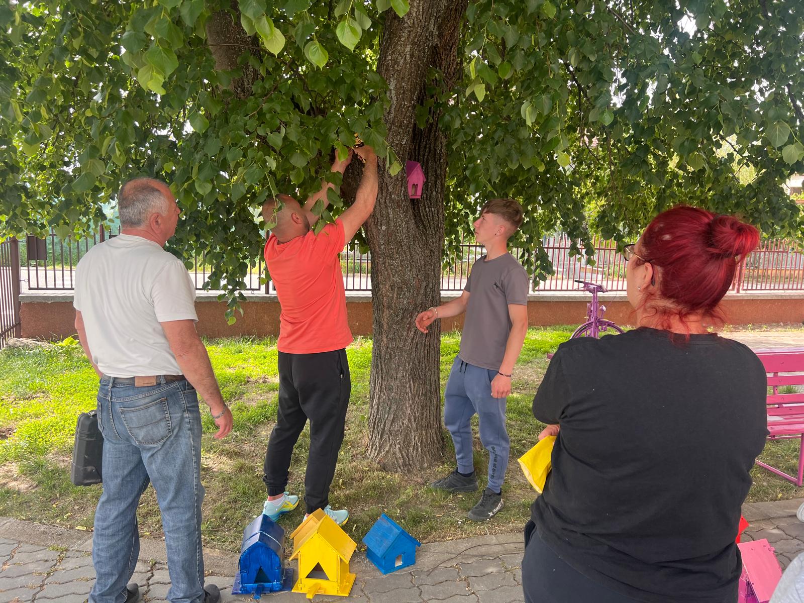 – Au fost confecționate cutii pentru păsărele, vopsite și mai apoi prinse într-un tei frumos, la intrarea în școală.